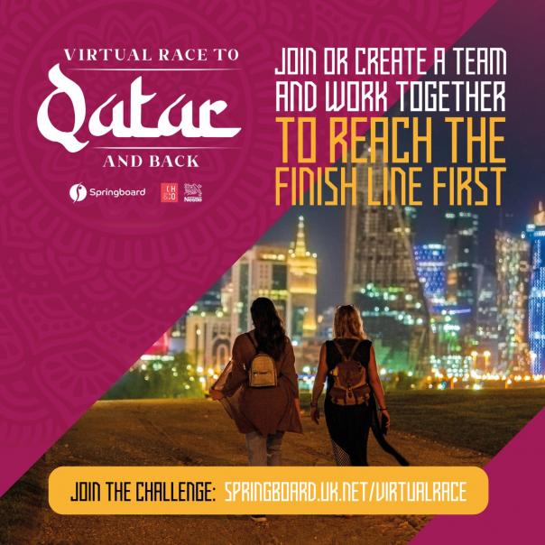 Registration is £15 per person and teams must pledge to raise £3,000 for Springboard. Participants can register at: www.springboard.uk.net/events/virtual-race-to-qatar-and-back/.