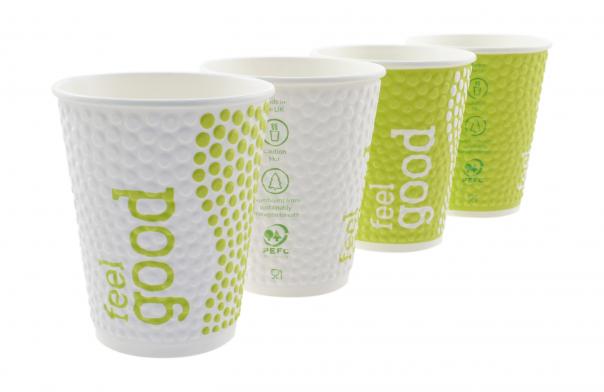 The new ‘feel good’ cup utilises sustainable 100% PEFC (Programme for the Endorsement of Forest Certification) paperboard with a plant based PLA coating on the inside.