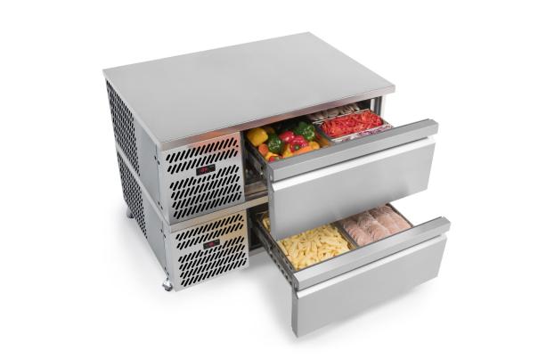 Chef’s Drawers are individual refrigerated units, made of stainless steel throughout. They bring refrigerated storage right to the heart of busy commercial kitchens, for example as part of a chef’s station, which is why they are designed to cope with ambients as high as 43°C.